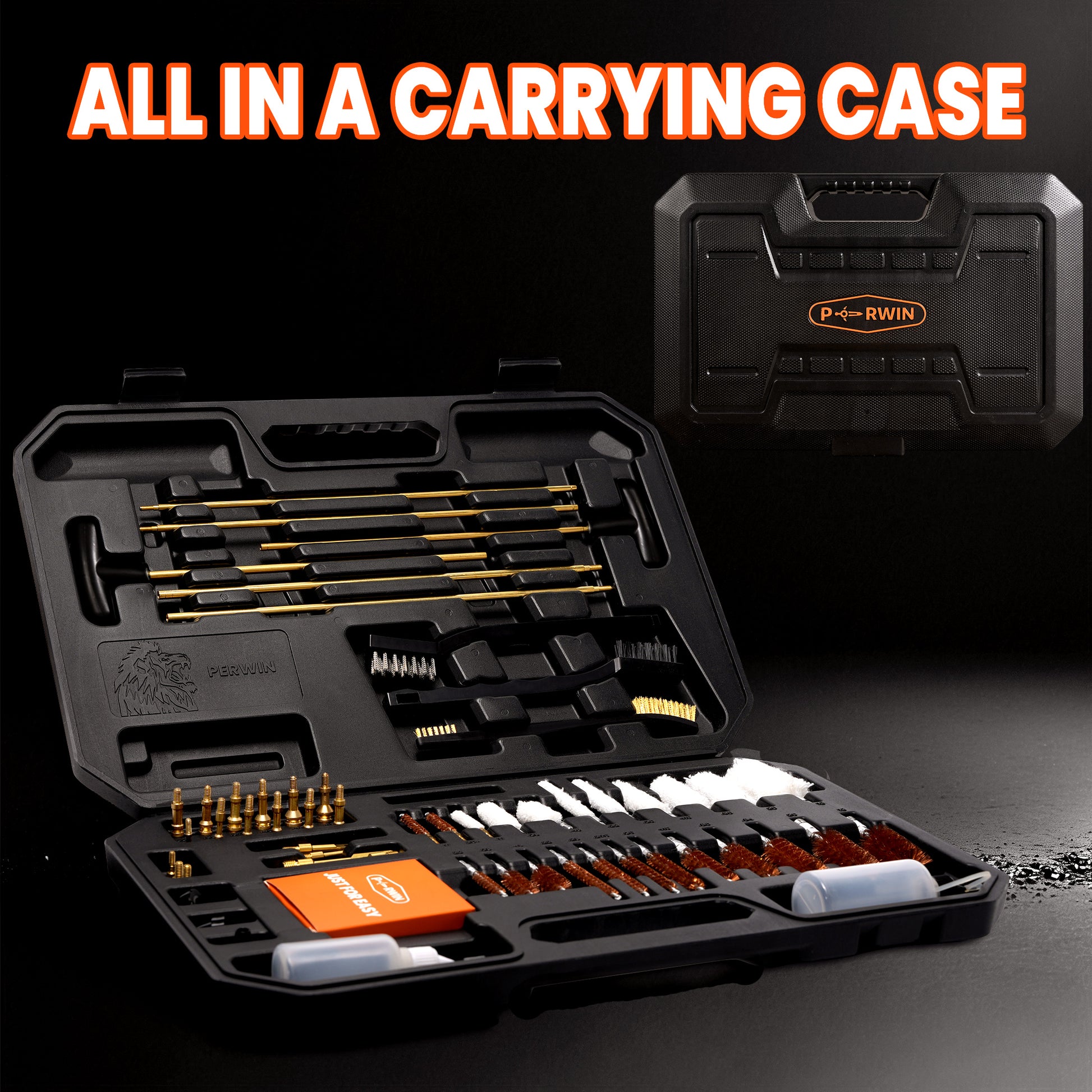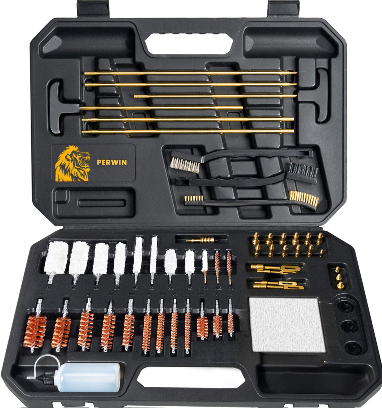 Universal Gun Cleaning Kit, Hunting Gun Accessories for All Caliber Pistols, Rifles, Handguns, and Shotguns, featuring a Carrying Case and Brass Rods