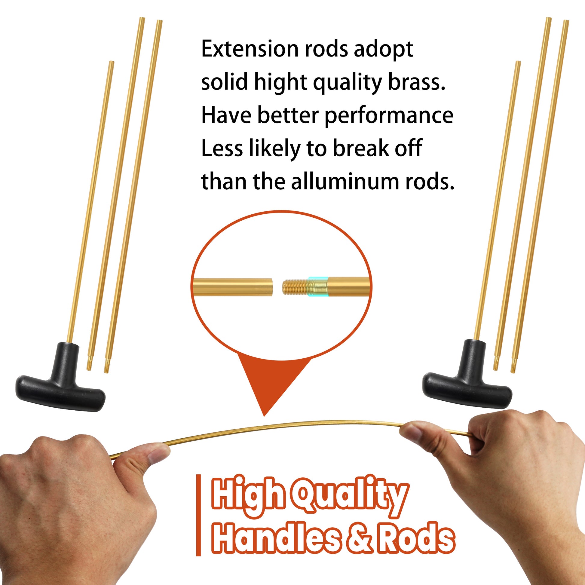 【PREMIUM MATERIAL】The brass cleaning rods are not only made of high-quality brass material but also strengthened interface technology, which is durable and not easy to break. Three different materials of brushes - Nylon brush, Wire brush, and Double-ended brass brush can clean different surfaces.